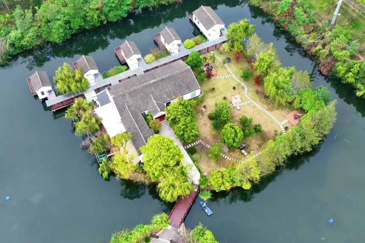 在距盛泽镇不远的七都镇,一片占地500亩的“山水桑田”生态园综合体同样引人入胜。这里水塘如镜,映照桑枝摇曳;江村桥畔,灌溉水车悠悠转动。古老的桑基鱼塘智慧在此生动再现:塘基植桑、桑叶饲蚕、蚕沙养鱼、鱼粪肥塘、塘泥壅桑,环环相扣,自成生态。水、田、桑相映成趣,移步换景,不仅维系着生态平衡,更无声诉说着鱼米之乡的丰饶密码。在这里,大小蚕房、丝绸工坊等六大功能区有序分布,与苏州大学等高校共建的产学研基地,更让传统技艺在创新中焕发新生。